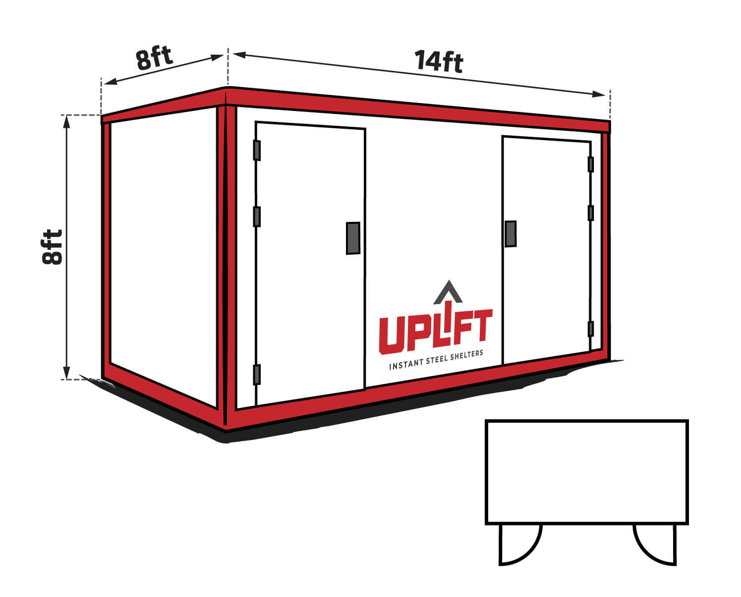 All UPLIFT™ Specialty Shelter models rest on a 6″ steel base with an integrated structural floor. Each shelter includes forklift sleeves for easy relocation and is certified to withstand snow loads up to 50 psf and wind speeds of 170 mph. Operable windows meeting egress code requirements, lockable door(s), “Griptonite” anti-slip floors, and optional shelving deliver a safe, secure, and comfortable living space.